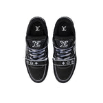 Cette sneaker LV Trainer incontournable est réinterprétée en denim embossé façon crocodile. Inspiré des chaussures de basket vintage, ce modèle présente une multitude d'emblèmes de la Maison, dont la signature Louis Vuitton style manuscrit ainsi que des fleurs de Monogram sur la tige et la semelle extérieure. Il se ferme à l'aide de lacets dégradés et d'une bride velcro ajustable.