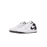 L'Air Jordan 1 Low "White Reverse Panda" est une nouvelle version du très populaire coloris "Panda" : elle présente la forme basse typique de l'AJ1, une tige en cuir blanc avec une zone d'orteil perforée, des détails noirs sur le col de la chaussure, le talon et les Swooshes latéraux, des détails du logo Air Jordan et une semelle comprenant un amorti Air.