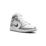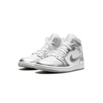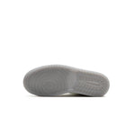 Le Swoosh latéral adopte lui aussi une finition métallique, tandis que le logo Jumpman sur l’étiquette se pare d’un élégant gris. Des lacets blancs viennent compléter l’ensemble, parfaitement assortis à la midsole immaculée et à l’outsole grise pour un rendu harmonieux et raffiné.