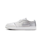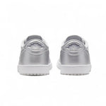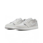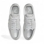 Proposée dans une palette de couleurs composée de gris neutre, d'argent métallisé et de blanc, la Air Jordan 1 Low est confectionnée en daim et cuir pour un effet premium. Les détails sur la pointe, le Swoosh et les empiècements au talon sont tous rehaussés d'une teinte argent métallisé, contribuant ainsi à l'esthétique de la chaussure. Le logo Wings classique sur le talon rappelle les versions CO.JP, et repose sur une semelle intermédiaire blanche et une semelle extérieure en caoutchouc gris neutre pour parfaire le design.