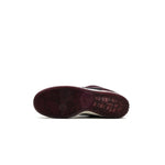 La sneaker se distingue par une tige en cuir acajou aux accents rouge profond, complétée par des empiècements en nubuck noir. Sa semelle translucide légèrement teintée de rouge laisse apparaître un motif évoquant des grappes de raisin, clin d’œil direct aux célèbres vignobles bordelais.