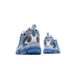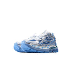 Les nouvelles baskets "BE RIGHT BLUE GREY" fusionnent l'esthétique de la course à pied performante avec les principes du design japonais. Fabriquées à partir d'une combinaison de mesh et de cuir caoutchouté, elles présentent de multiples éléments de design signature de la marque et introduisent un nouveau langage Arrow dynamique. Ces baskets en édition limitée s'inspirent des couleurs des bus publics à Paris, célébrant le bus comme une intersection de la mode et de la ville.